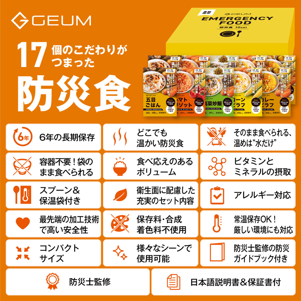 発熱剤と保温袋がついているので、いつでもどこでも温かくおいしい防災食を食べることができます。